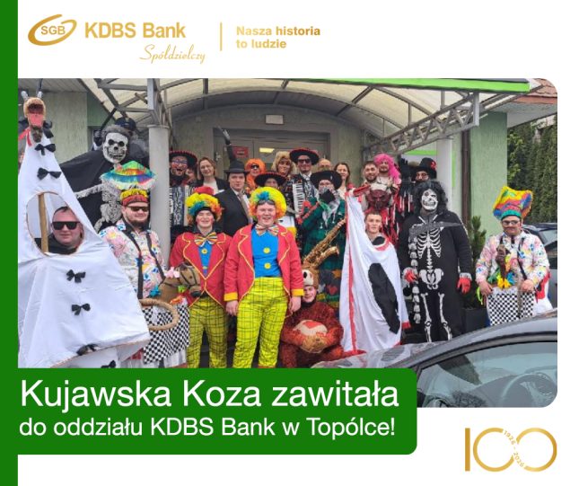 Oddział Kujawsko-Dobrzyńskiego Banku Spółdzielczego w Topólce wypełnił się muzyką, śmiechem i barwami jednej z najbardziej charakterystycznych tradycji naszego regionu. Nasze progi odwiedziła Kujawska Koza, wyjątkowy zwyczaj zapustny, który od pokoleń stanowi symbol radości, wspólnoty i lokalnej tożsamości.